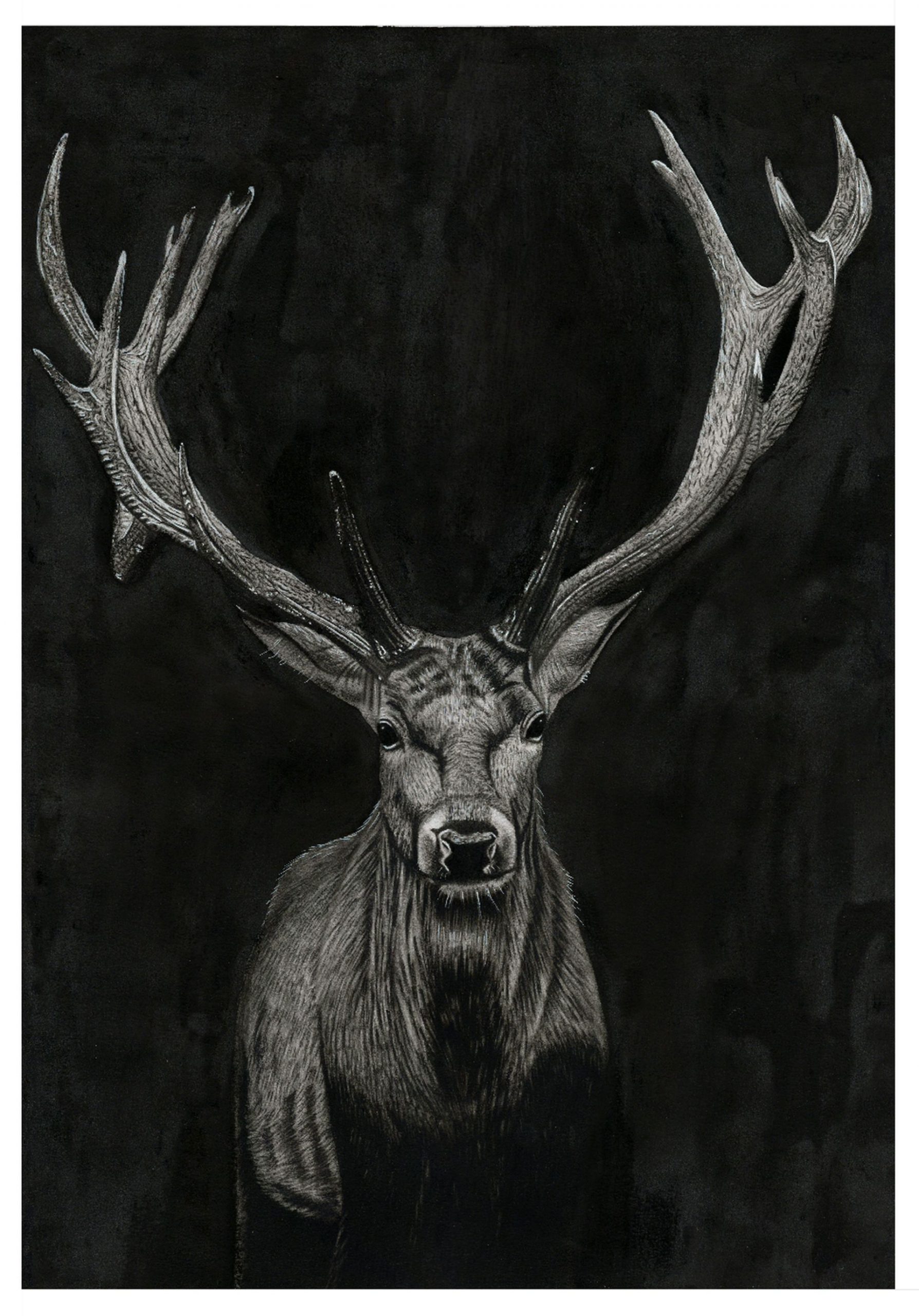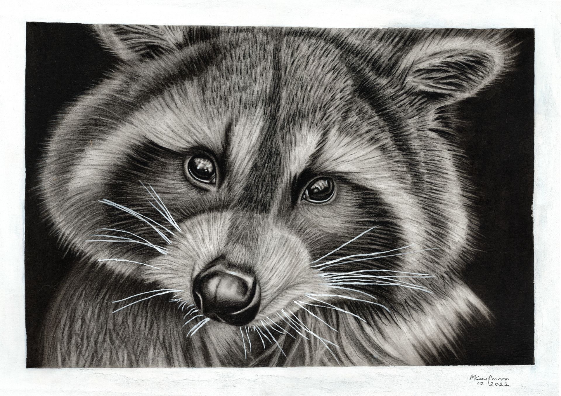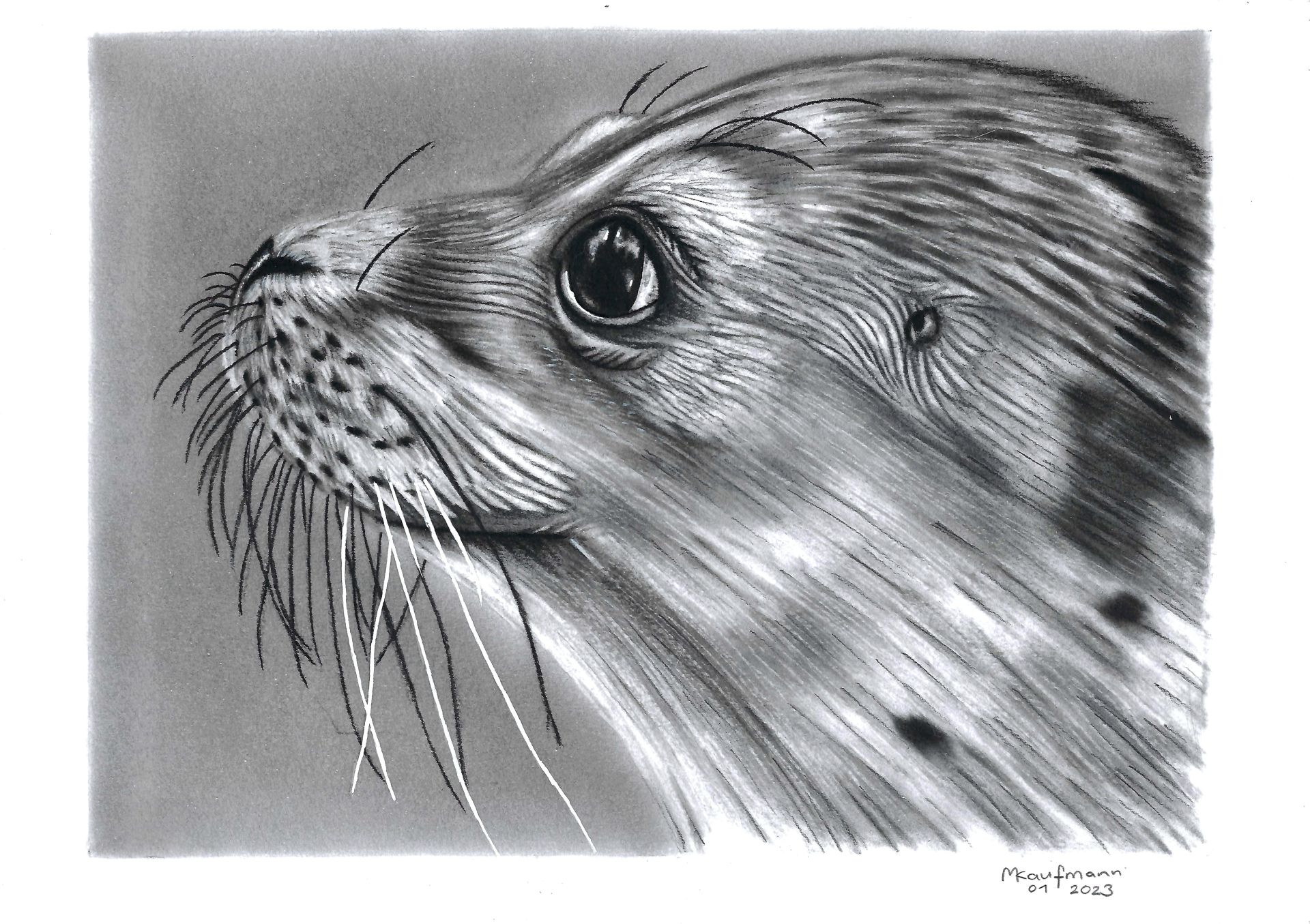 Bleistift- und Kohlezeichnungen Robbe – A4CHF 290.00 Waschbär – A3CHF 650.00 Fuchs – A4CHF 375.00 Hirsch – A2CHF 595.00 Adler – A4CHF 425.00